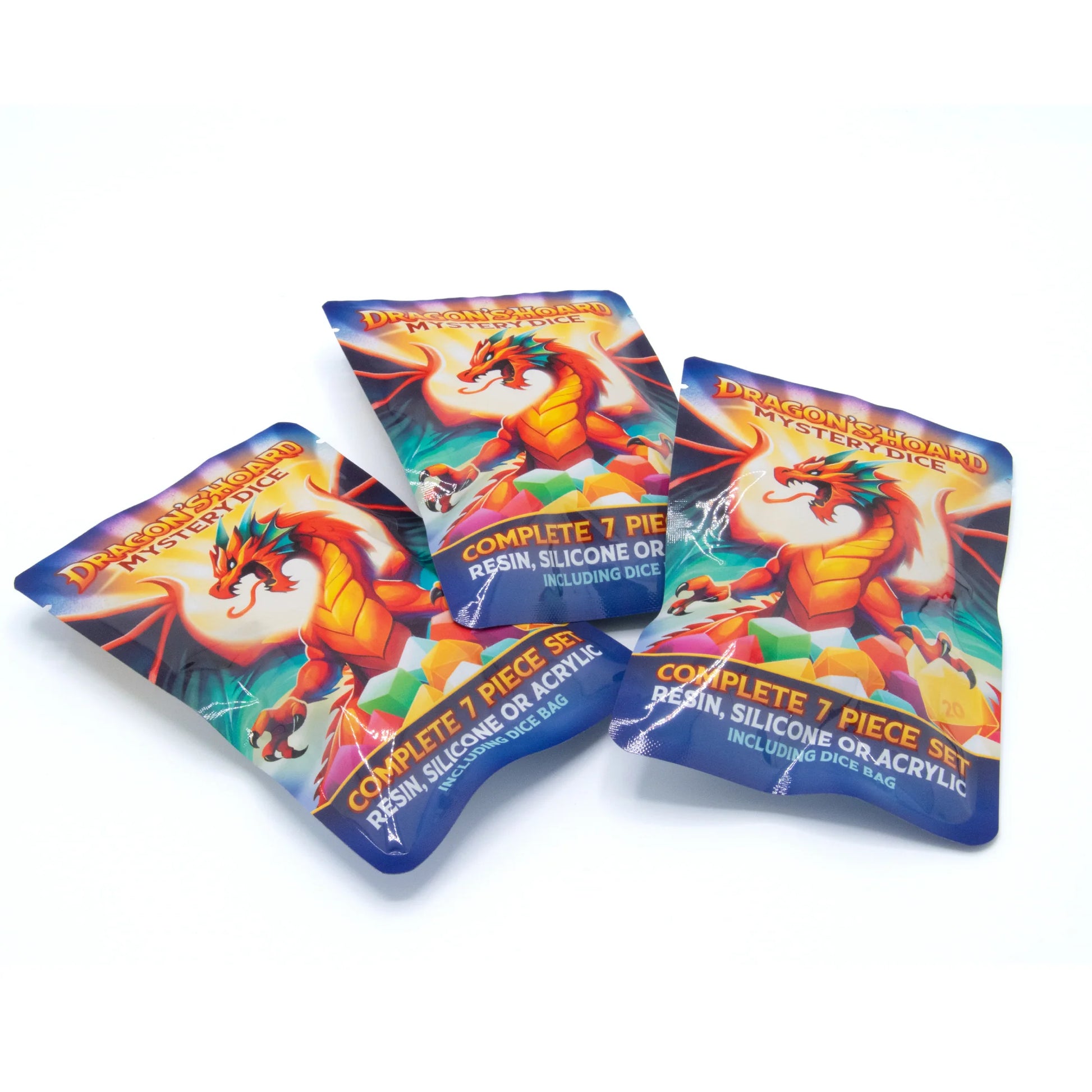 Je ontvangt een willekeurige 7‑delige dobbelsteenset — een spannende verrassing bij elke bestelling.